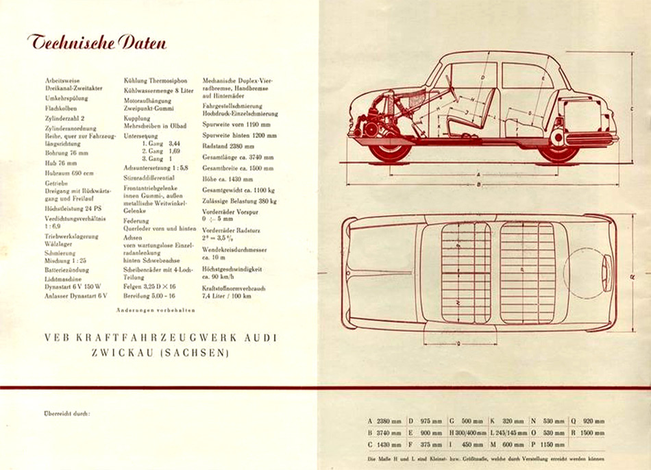 (Quelle: VEB Kraftfahrzeugwerk Audi Zwickau, 1955. Achtung! Alle Angaben sind ohne Gewähr! Für Fehler und den aus deren Nutzung resultierenden Schäden wird keine Haftung übernommen. Die kommerzielle Nutzung ist ausdrücklich untersagt.)
