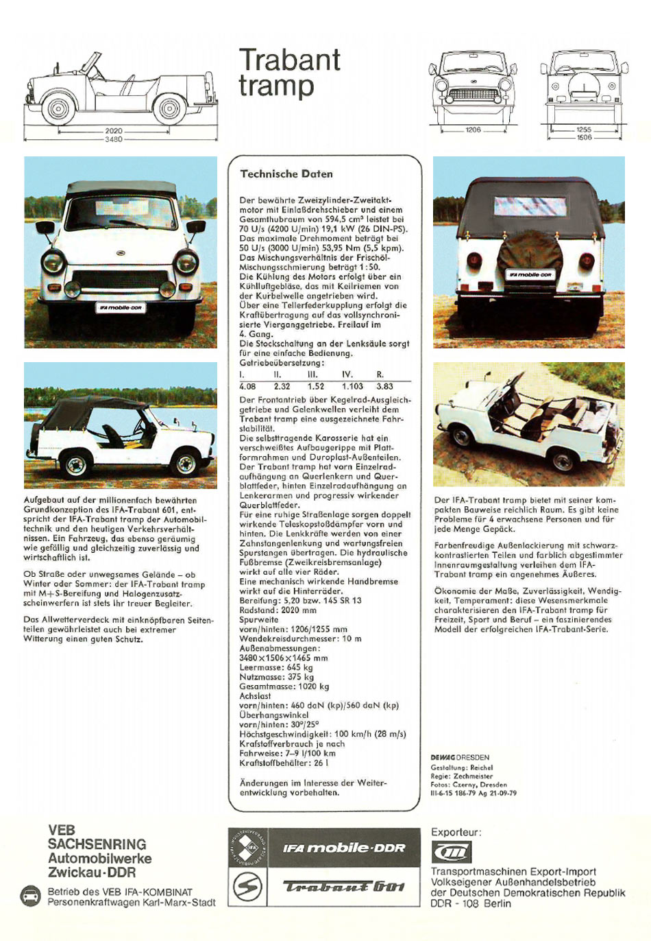 (Quelle: VEB Sachsenring Automobilwerke Zwickau, 1979. Achtung! Alle Angaben sind ohne Gewähr! Für Fehler und den aus deren Nutzung resultierenden Schäden wird keine Haftung übernommen. Die kommerzielle Nutzung ist ausdrücklich untersagt.)
